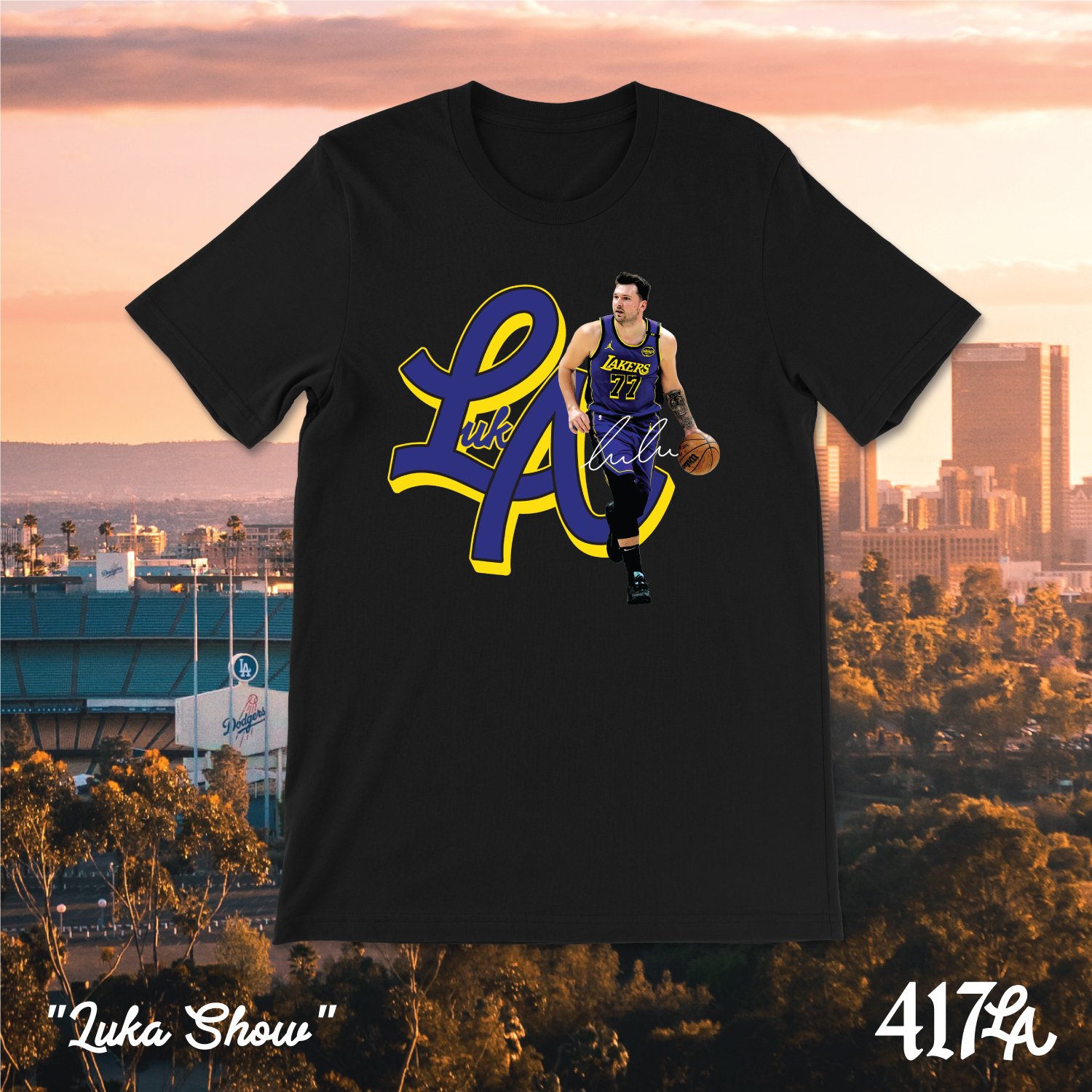 This limited edition tee blends bold basketball energy with LA street culture. Featuring a custom graphic of Luka draped in purple & gold, this shirt is a tribute to the ultimate “what if.”